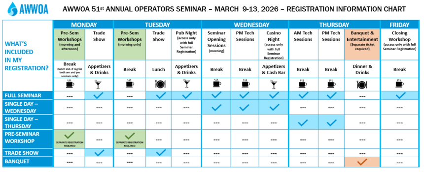 The Seminar offers a variety of technical presentations on water & wastewater industry topics and trends worth 0.9 CEUs plus a half-day "Friday Session" worth an additional 0.3 CEUs. The event will feature an outstanding two-day trade show showcasing the latest industry products and services as well as our Thursday night Gala to present our industry awards along with entertainment for the evening.